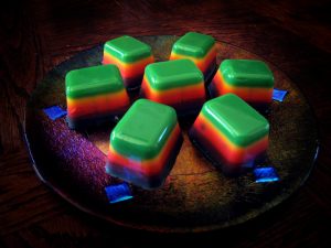 This is attempt two at Key Lime Pie Jello Shots. The first batch was composed to Key Lime juice and sweetened condensed milk, and was rather tart. This time around I added a whipped topping and colored sugar. The flavor is perfect. The tinfoil baking cups worked out great. The jello did not leak or stick to the foil.