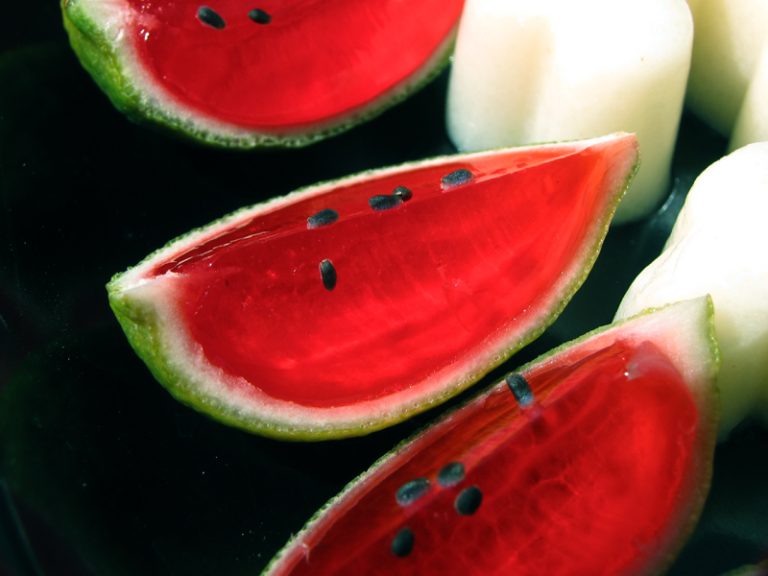 These are Strawberry Daquiri jello inside tiny key lime rinds. Unless you are a masochist who likes tedious tasks, use a reasonably sized lime. Seriously. What is wrong with me? Strawberry Jello Water Bacardi 151 Key lime rinds Basil Seeds…